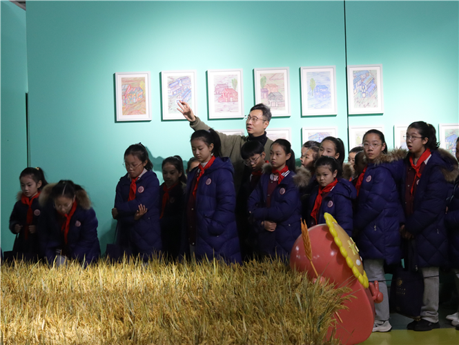 此次展览共有“云岫・鹭耕”“稔岁・墟烟”“织杼・共簪” 三大篇章,涵盖中国画、油画、水彩、书法、雕塑与装置的艺术作品,如画卷般展现新时代南京乡村的多元风貌。南京书画院专职画家、青年画院副院长林聪文为大家作导览,从专业角度解读不同作品的特点,启发学生思考和创作。展厅装置将稻田搬进了展馆,置身于乡间稻田之间感受风吹稻浪的秋收气息。学生们与林老师积极互动,探索和享受着这场视觉盛宴。