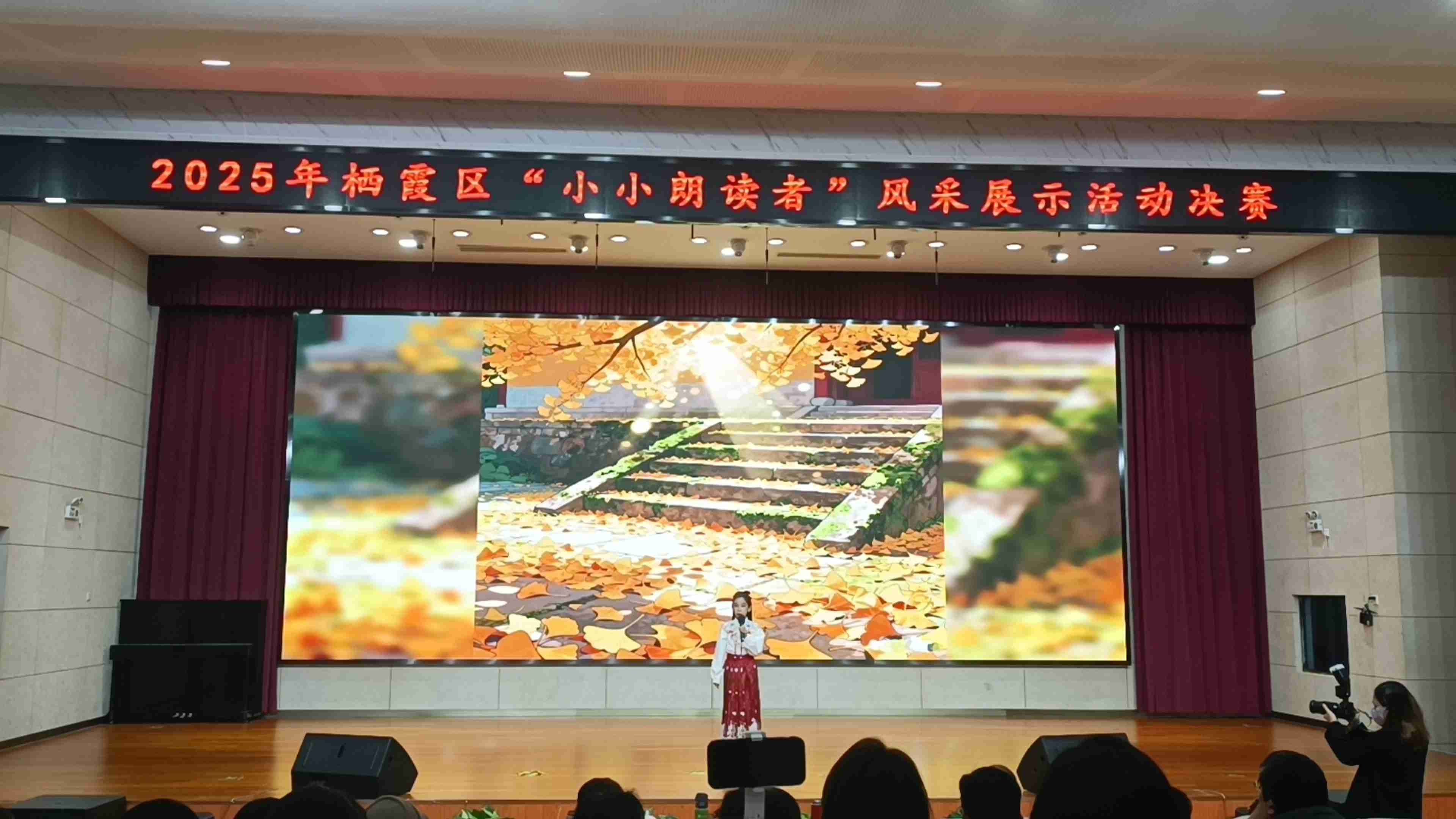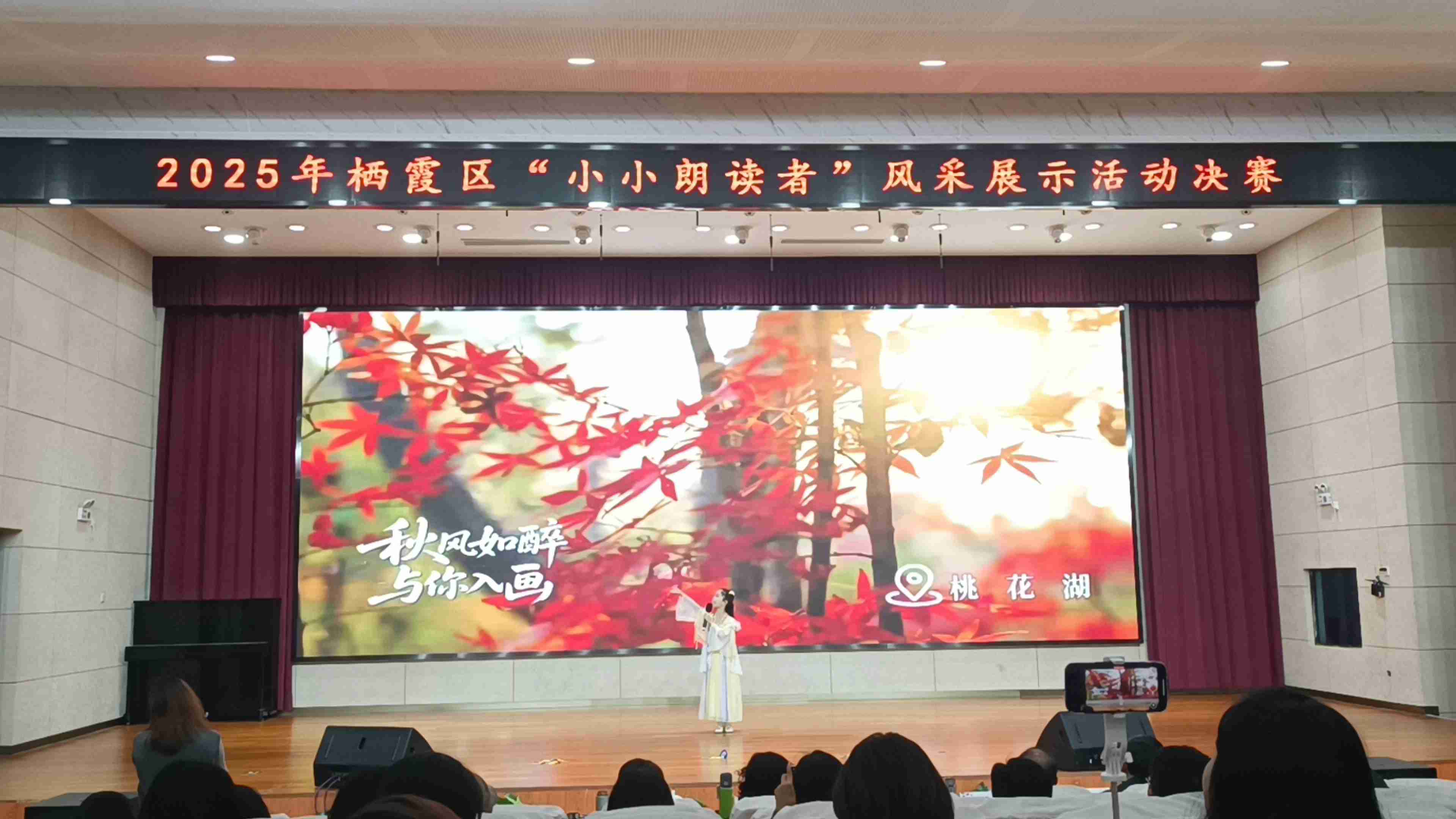 三(3)班袁紫姝同学朗诵的《栖霞,一个藏着美好的地方》,以灵动活泼的姿态、饱满诚挚的童真,打动了在场的所有评委和观众;四(2)班路淇羽同学的《栖霞风韵》则以其清新自然的风格、热情洋溢的语调,赢得了阵阵掌声。